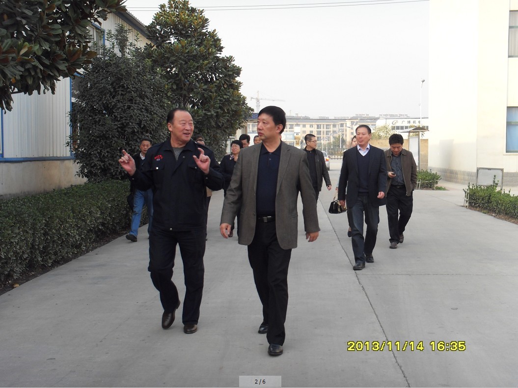 周宏局長下車間考察生產(chǎn)情況,右起:淮北市科技局宋偉局長、省知識產(chǎn)權(quán)局周宏局長、宇鑫公司耿玉明總經(jīng)理、濉溪縣人大李湘軍主任