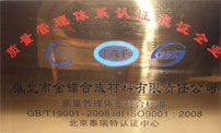 淮北宇鑫新型材料有限公司各部門在公司董事長耿玉明的領(lǐng)導下,經(jīng)過五個多月的不懈努力,順利通過了ISO9001質(zhì)量管理體系認證評審,獲得了《 ISO9001:2008國際質(zhì)量體系認證證書》。這標志著淮北宇鑫新型材料有限公司在質(zhì)量管理、人力資源、基礎(chǔ)設(shè)施 、工作環(huán)境、技術(shù)操作、現(xiàn)場管理等一系列企業(yè)管理體系的成長和成熟。