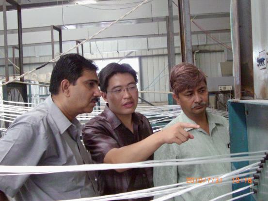 印度客商瀚姆先生、蘇地先生參觀“玻璃鋼錨桿生產(chǎn)線”