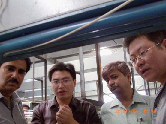 2010年7月31日,印度客商在公司副總經(jīng)理崔志軍、江德周等的陪同下,參觀了公司生產(chǎn)的“MYC-1200型錨桿成型機(jī)”,并考察了玻璃鋼錨桿成型機(jī)生產(chǎn)線;對(duì)我公司自主研發(fā)生產(chǎn)的“MYC-1200型錨桿成型機(jī)”及生產(chǎn)工藝具有極大的興趣,意向購買并合作。