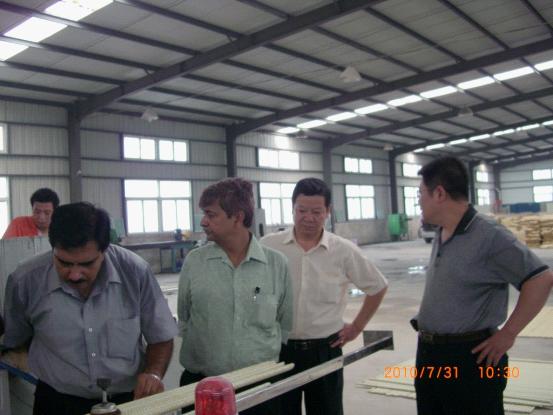 公司副總經(jīng)理崔志軍先生、江德周先生陪同印度客商瀚姆先生、蘇地先生觀看成型的“玻璃鋼錨桿”